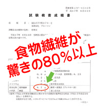 同じ粉寒天でも原料や生産方法により食物繊維の含有量は異なります。当店の粉寒天は原料が良質のものだけを使用!だから食物繊維は驚異の80%以上含有!さらにカロリーゼロ! |